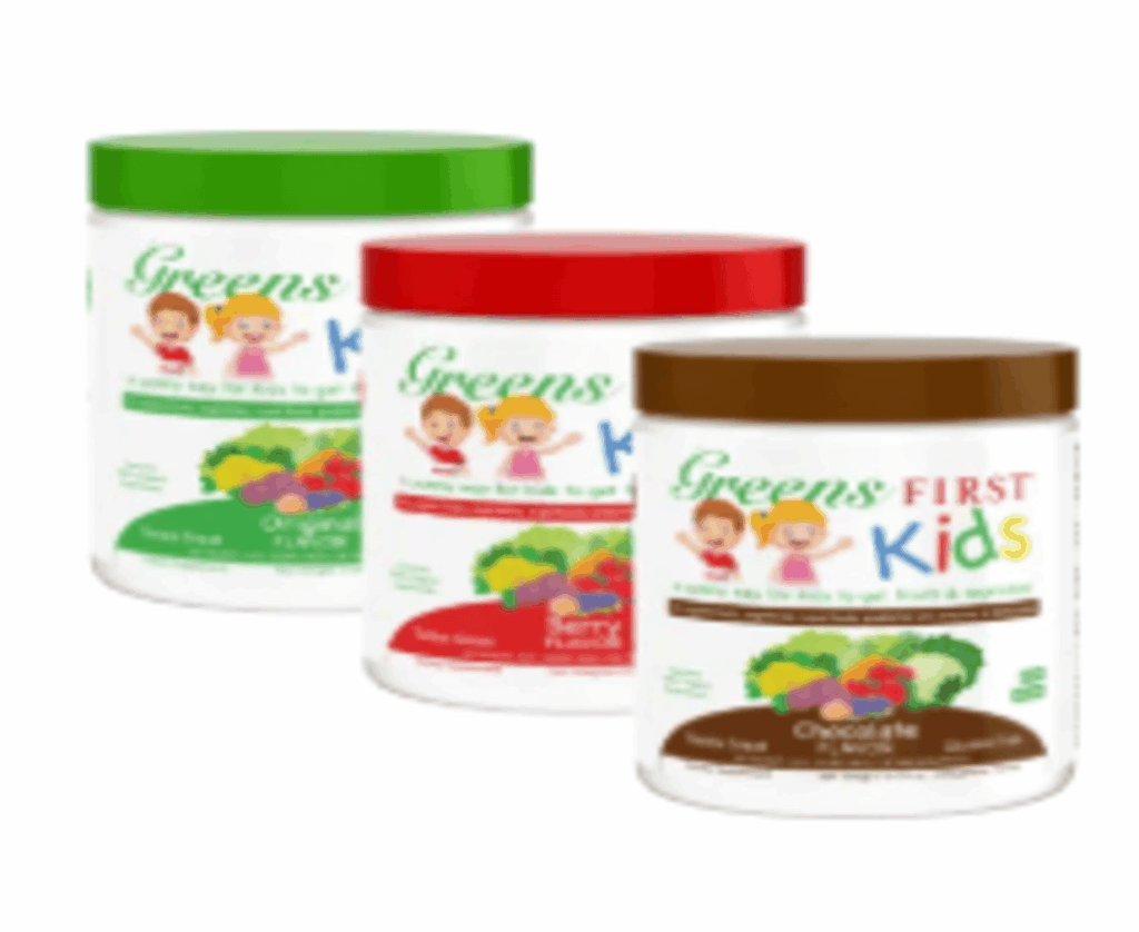 Greens First KIDS comes in 3 great flavors: Original Mint, Berry and Chocolate.